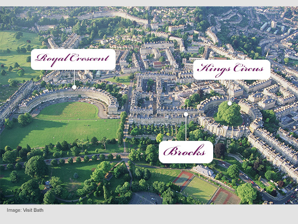 Brocks is situated in a unique location between the World heritage Royal Crescent and The Circus (See map below)